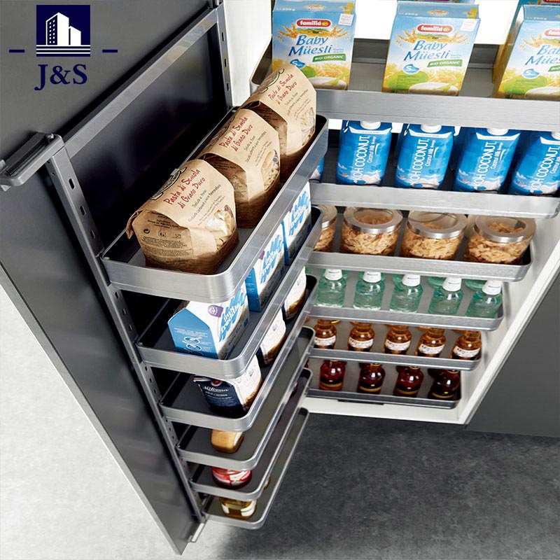 Siden fremkomsten af Soft-stop Tall Larder Organizer Pull Out Pantry Unit Basket har forskellige funktioner og stilarter gradvist udviklet sig, hovedsageligt inklusiv krydderi-trækkurve, skål-trækkurve, hjørnetrækkurve, skuffeudtrækskurve, høje og dybe trækkurve osv. fordele anerkendes stadig af alle.